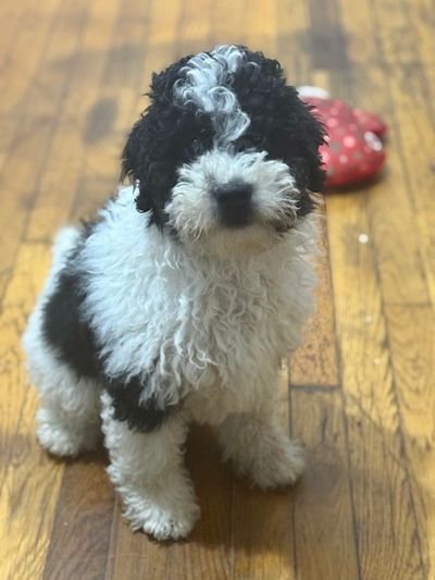 We are currently fostering a 5 month old mini tricolor parti male puppy, vetted and appropriately vaxxed. He is sweet and very social. I will send his photos to serious inquiries, although he resembles the puppy in the photo on the left. Blackbriardoodles@gmail.com. It is uncommon to have such a young puppy as a rescue.