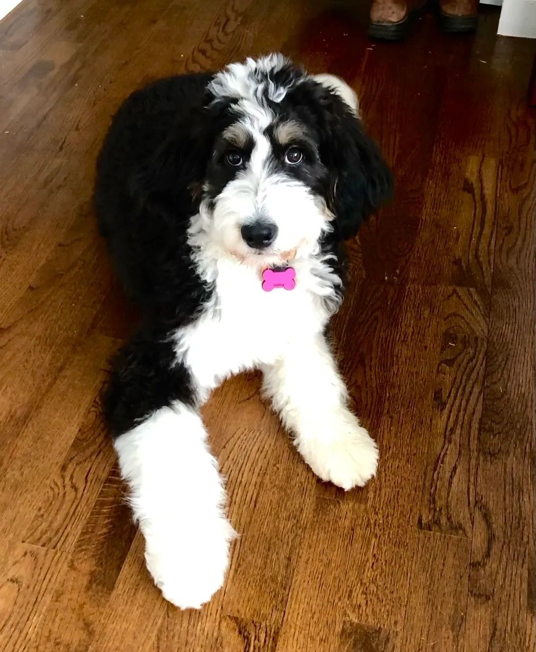 Our trained puppies are crate trained, housebroken, extensively socialized, and know all basic commands. There are currently 3 lovely 4 month old puppies who will be finishing their training in a few weeks or so. They are F1b, fully vaxxed, and live in our busy household with kids and cats.
